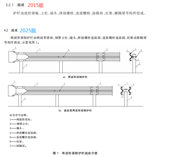 GB/T 31439.1-2025《波形梁鋼護(hù)欄 第1部分:兩波形梁鋼護(hù)欄》?于2025年8月29日發(fā)布,計(jì)劃于2026年3月1日實(shí)施,替代2015規(guī)范公路交通工程中兩波形梁鋼護(hù)欄的技術(shù)要求與安全性能。??