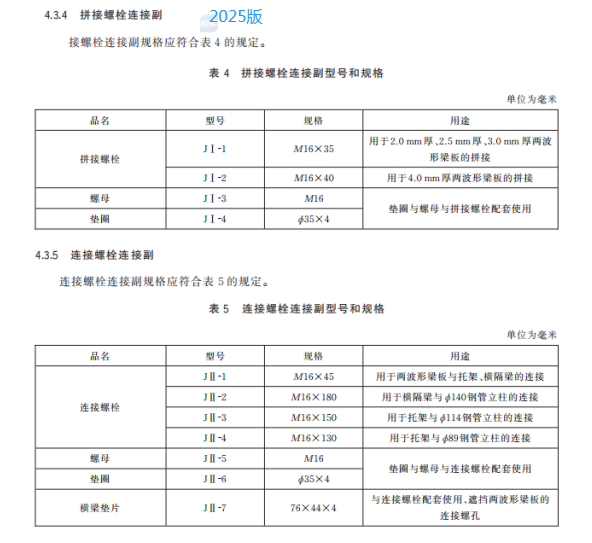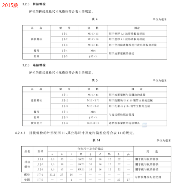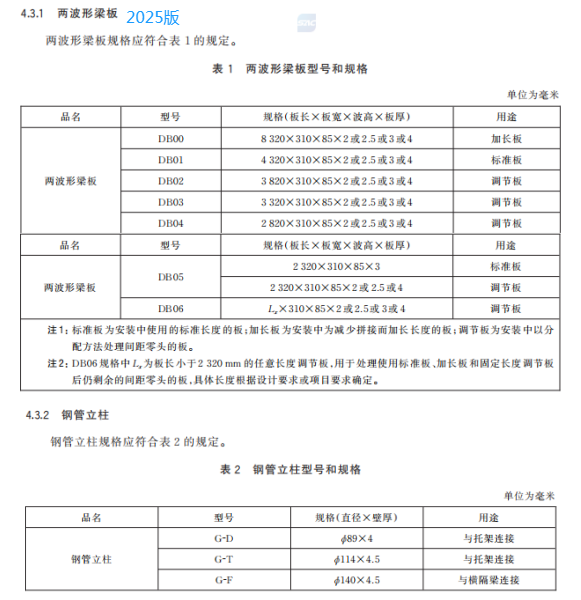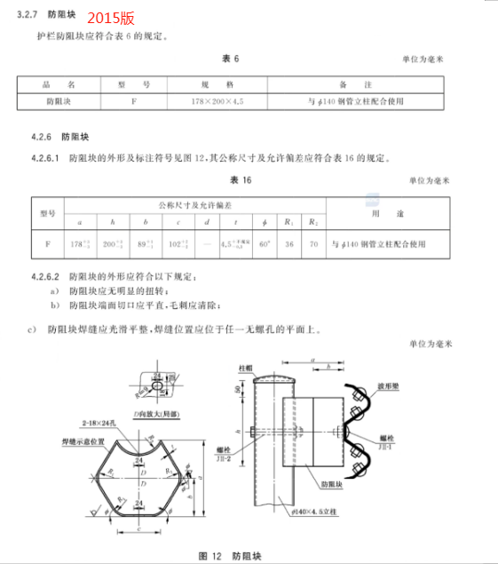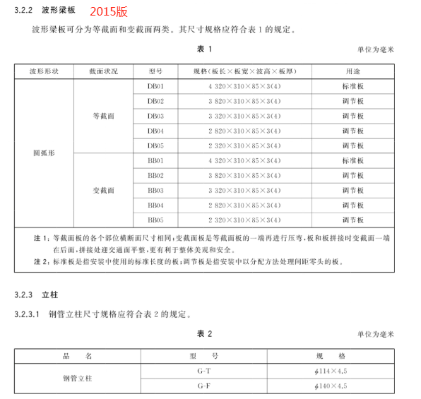 c) 更 改 了 兩 波 形 梁 板 、鋼 管 立 柱 的 用 途 、型 號 和 規(guī) 格(見 4.3.1、4.3.2,2015 年 版 的 3.2.2、3.2.3.1);