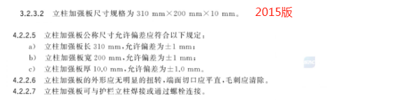 d) 刪除了鋼管立柱加強(qiáng)板及相關(guān)技術(shù)要求(見 2015 年版的 3.2.3.2、4.2.2.5~4.2.2.7);
