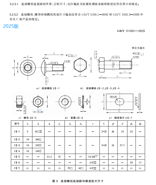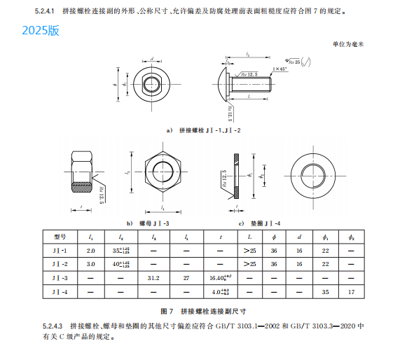 e) 更改了拼接螺栓連接副和連接螺栓連接副的用途、規(guī)格、公稱尺寸及允許偏差(見 4.3.4、4.3.5、5.2.4.1、5.2.4.3、5.2.5.1 和 5.2.5.3,2015 年版的 3.2.5、3.2.6、4.2.4.1 和 4.2.5.1);
