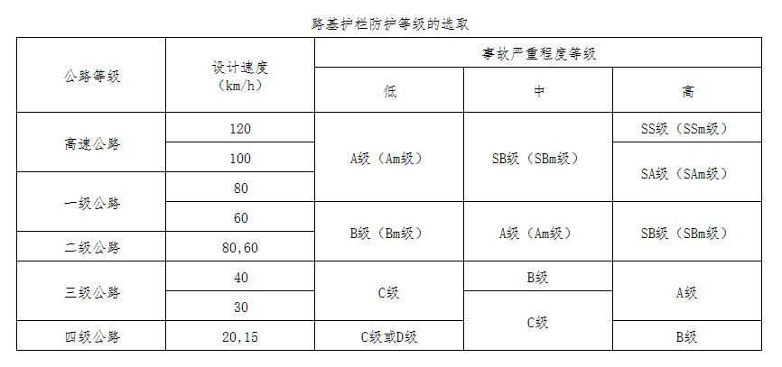 事故嚴(yán)重程度等級(jí)是判斷護(hù)欄防護(hù)等級(jí)選取的重要前置條件,同時(shí)也相關(guān)護(hù)欄設(shè)置必要性的判斷條件,當(dāng)?shù)燃?jí)為“高”時(shí),必須設(shè)置護(hù)欄,當(dāng)?shù)燃?jí)為“中”時(shí),應(yīng)設(shè)置護(hù)欄,當(dāng)?shù)燃?jí)為“低”時(shí),宜設(shè)置護(hù)欄。